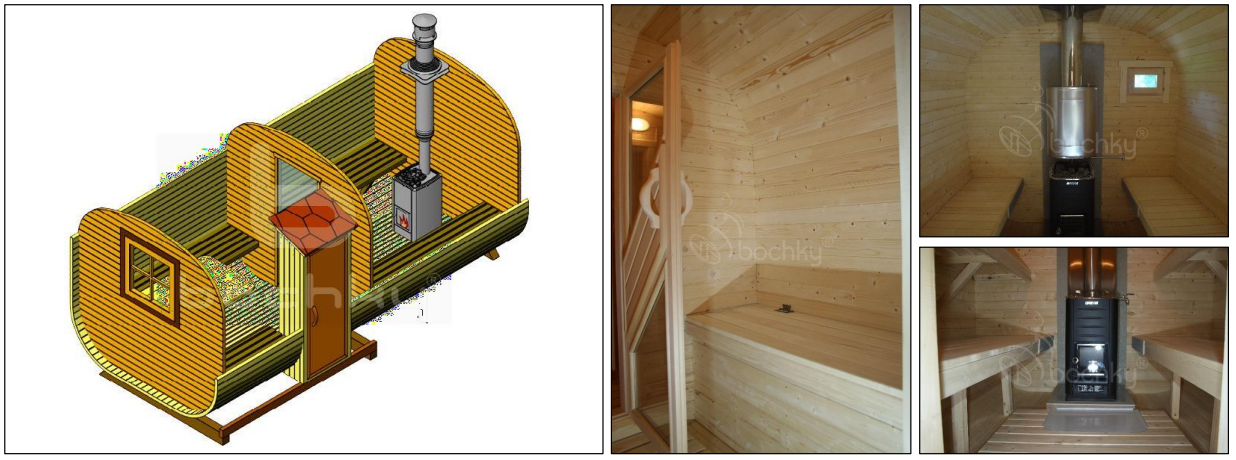 2개의큰 방이있으며회사를쉽게수용 할 수 있습니다. 타원의모양으로인해겨울철에도객실을빠르게가열할 수 있습니다. 사우나는기중기조작기에의해 기성품형태로장착되거나하루 만에현장에조립됩니다.